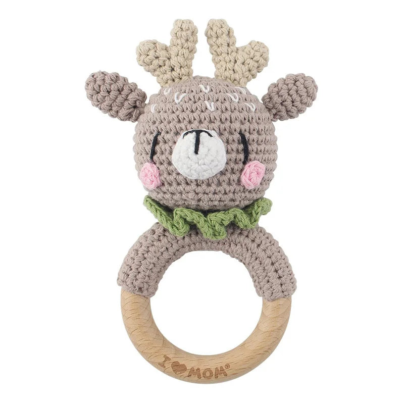 Crochet Wooden Teether Ring Rattle