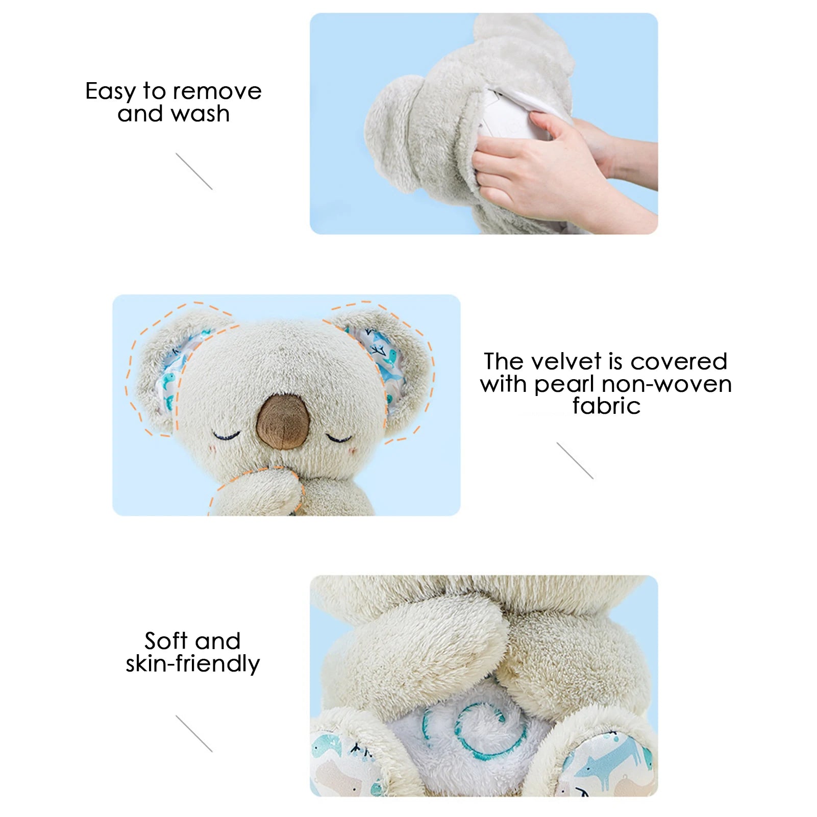 Experience the scientifically proven benefits of our Koala Soothing Musical Plush Toy, designed to gently guide your child to sleep. With four soothing modes, including low-frequency music and a Nano sleep aid breathing lamp, this plush toy simulates a sleeping baby and helps prevent crying. Our white noise feature eliminates excess noise and promotes a peaceful, disturbance-free sleep. Plus, the synchronized music and breathing sounds create a calming environment for your child.