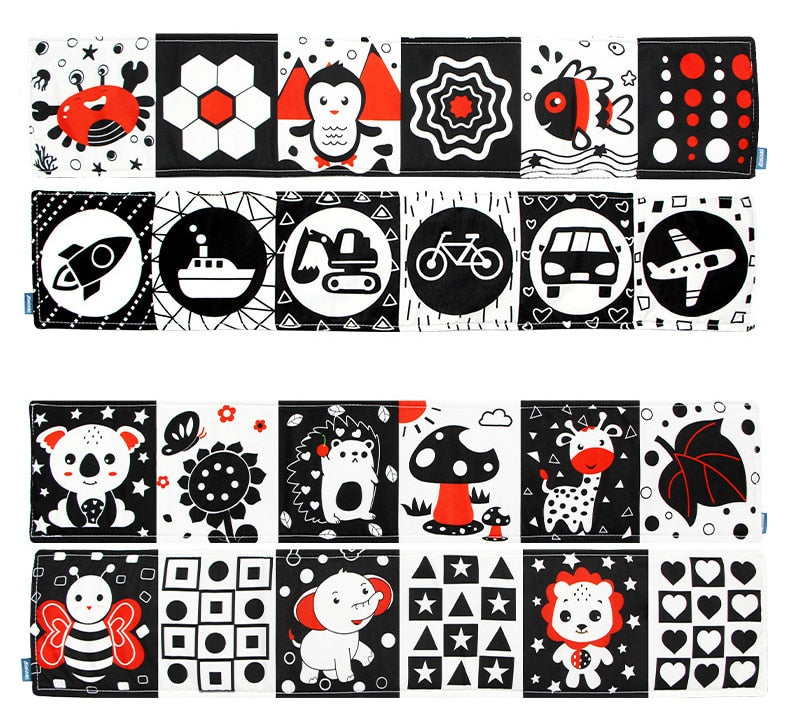 【 Safe】The black and white baby soft book is made of non-toxic, fabric material, durable and has firm stitches.