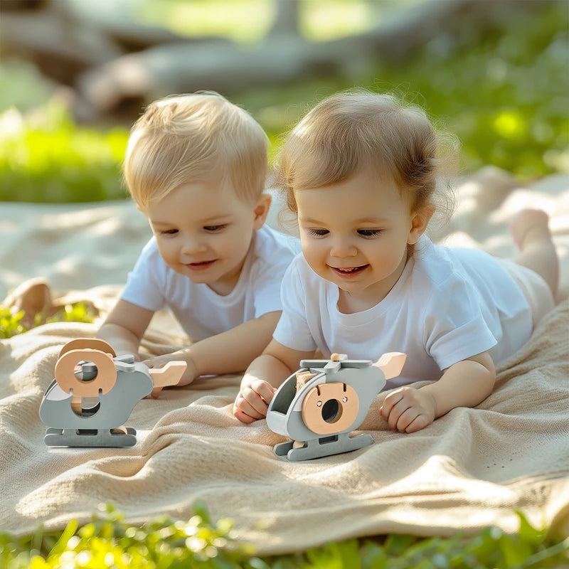 This wooden helicopter toy is designed to engage children in imaginative play while developing fine motor skills. The rotatable propellers and flippable circular windows encourage hand-eye coordination, dexterity, and problem-solving. Crafted from high-quality, safe wood and painted with non-toxic colors, it’s perfect for young children to explore and enjoy. A durable and engaging toy that sparks creativity and introduces basic mechanical concepts through play.